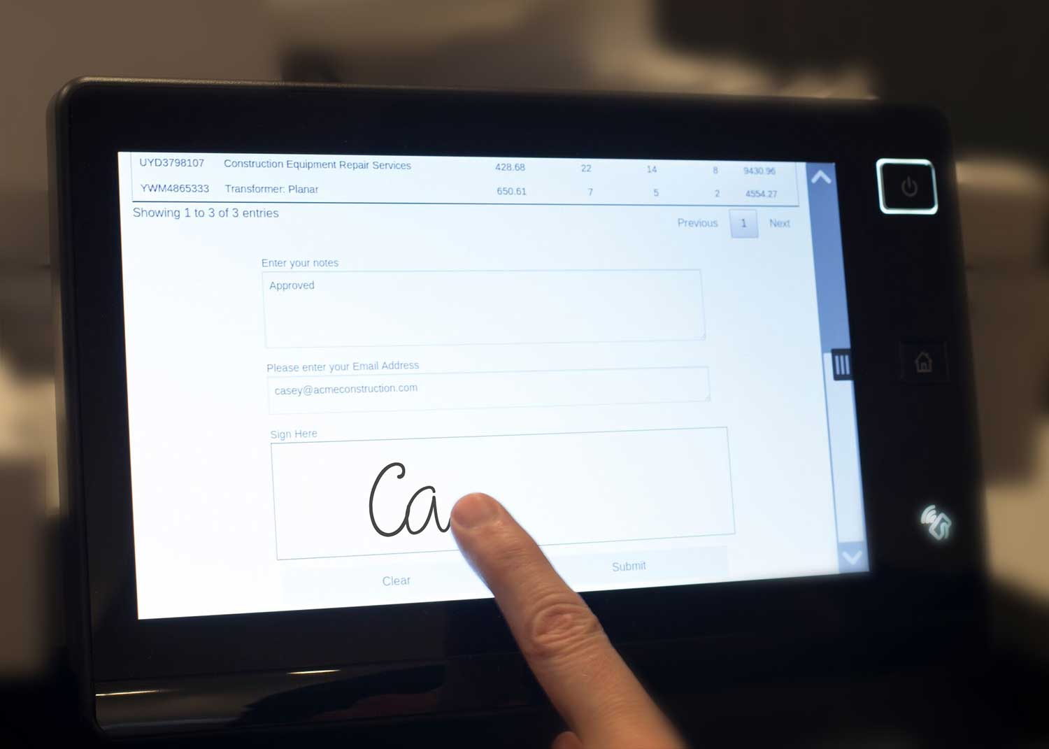 SignMe™ allows all printed documents requiring signature or editing to first appear on the touchscreen of any Xerox VersaLink or AltaLink device. Once the desired document listed on the touchscreen is selected, the document displays. The user can scroll through, make notes and sign the document on the touchscreen. The document will then follow the specific process the customer requires, such as print out for the user, convert to text searchable PDF and flow into virtually any end user’s content management system.